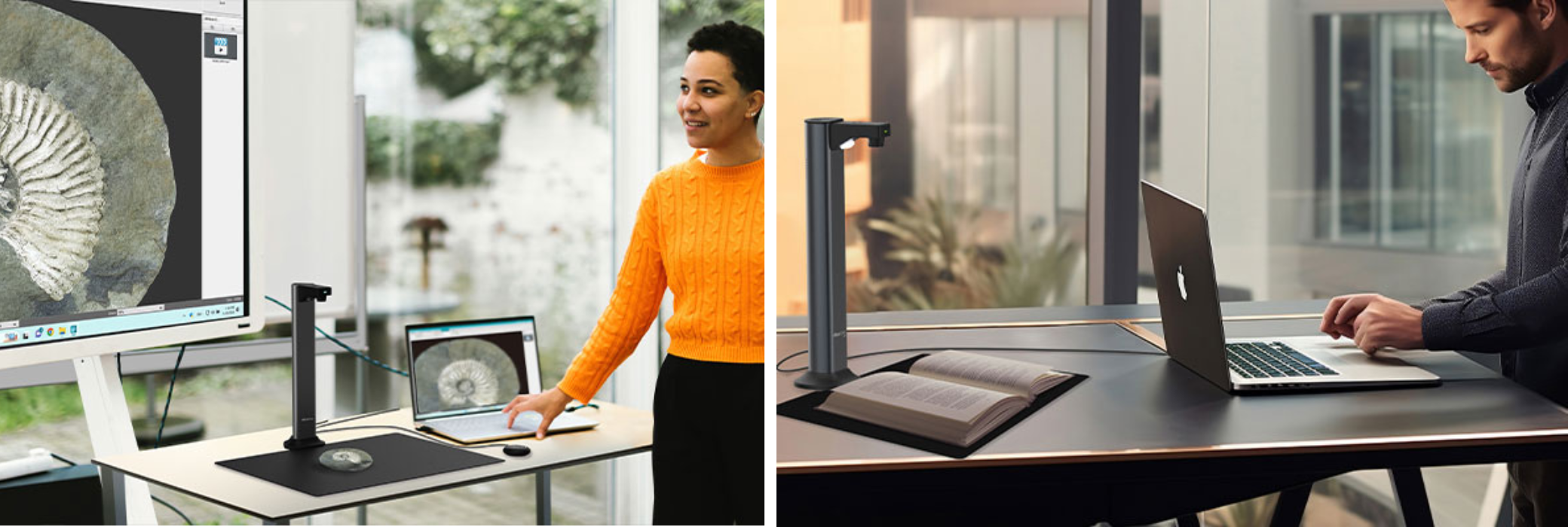 Обидві моделі мають весь набір функцій серії Desk 7: автоматичне перегортання сторінок, антиблікове світло, OCR, озвучення тексту й повну сумісність з відеоконференціями.